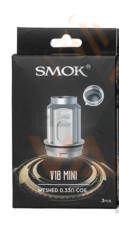 SMOK TFV18 Mini Replacement Coils explicitly designed for the SMOK TFV18 Mini Tank and the SMOK Fortis Kit. The TFV18 Mini Coil is available in 0.33ohm and resistance, allowing you to personalize your vaping preference or try all of the TFV18 Mini coils, with each one offering a unique vaping style and advantage.So grab your SMOK TFV18 Mini Meshed coils and enjoy these long-lasting, high-performance coils that produce fantastic flavor and massive vape clouds.