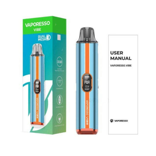 The Vaporesso Vibe Pod Kit features a 1100mAh battery, 4.5ml e-liquid capacity, and dual mesh coils for rich flavour. It offers ECO and PWR modes, ultra-fast draw activation, and a TFT screen for easy control. With multiple safety protections and vibrant colour options.