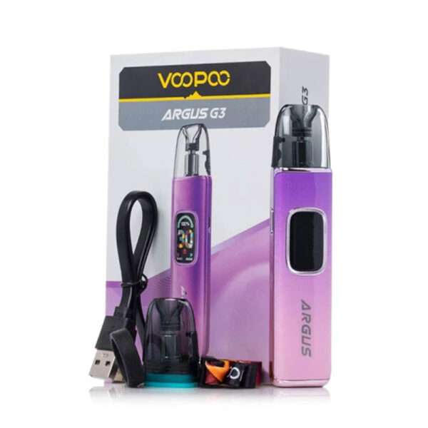 The Voopoo Argus G3 is a sleek, lightweight vape with a 1500mAh battery, 5–30W output, and 2ml vape juice capacity. It offers smooth airflow control, dual activation, a 0.96″ color screen, and full Argus pod compatibility with built-in safety features.