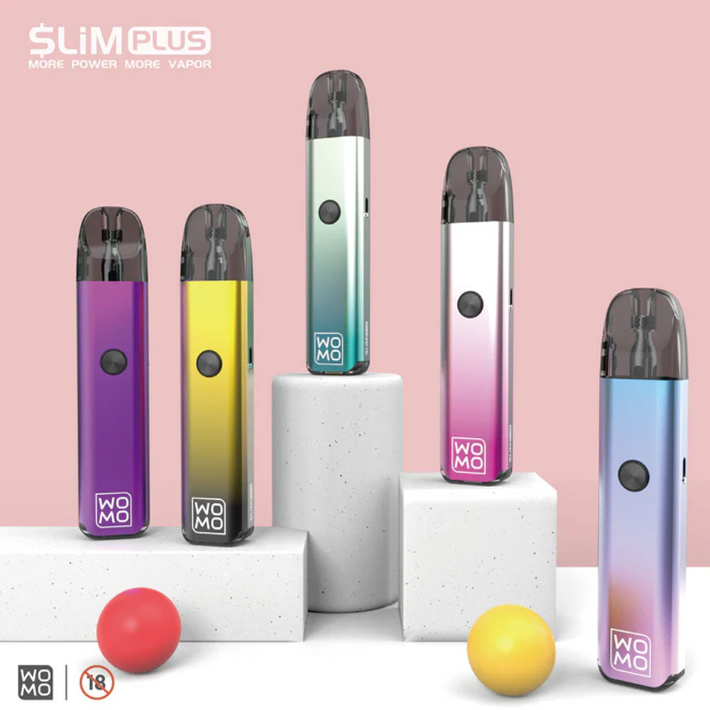 The WOMO Slim Plus features a slim, ergonomic design with a 32W power output and adjustable wattage for a customizable vaping experience. Powered by a 900mAh battery, it provides long-lasting use and features an LED display to monitor key settings. The device also includes essential safety protections like overcharge and short circuit prevention for a secure vaping experience.