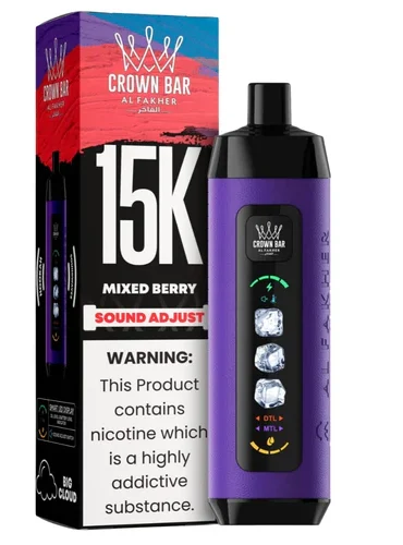 Enjoy a blast of icy freshness with the Al Fakher Crown Bar Berry Ice Disposable 15000 Puff 6mg. This vape combines