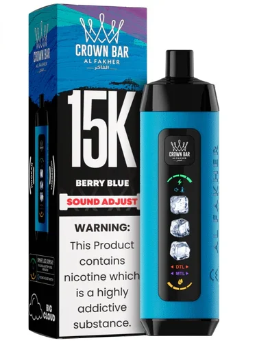 The Berry Blue Al Fakher Crown Bar is a popular disposable vape that offers a sweet and cool blueberry flavor with an icy finish, available