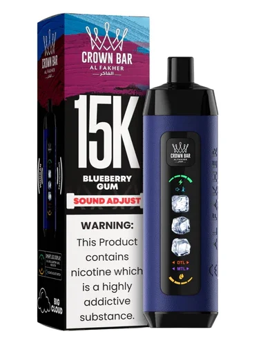 The Blueberry Gum Al Fakher Crown Bar disposable vape offers a delightful blend of juicy blueberries and the classic, nostalgic sweetness of chewing gum.